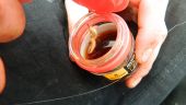 Vybral som si tekutý dip, BROWNING MATCH & FEEDER DIP – LIVER EXTREME . Hneď po jeho otvorení mi ostalo nevoľno. Celé okolie zamoril hrozný zápach. To sa asi ani nedá opísať. Fakt som zvedavý, ako na to zareagujú ryby. Ulakomí sa konečne aj niečo väčšie? Rýchlo som napichol 3 bielych kostných červov a hák namočil do dipu. Po nahodení netrvalo dlho, kým prišiel prvý záber. Razantný, že udica skoro vyskočila zo stojana. Hneď po záseku som vedel, že nejde o malú rybu. Po asi 5 minútovom súboji som na hladine uvidel svalnaté telo krásnej mreny. Je to náhoda, alebo dip skutočne funguje? Celý proces preto opakujem. 3 biele kostné červy namočené v dipe a šup späť do vody. Reakcia rýb bola okamžitá. Hneď po dopade do vody prichádza opäť tvrdý záber a tvrdý boj. Takto to pokračovalo aj ďalej. Nebudem opisovať súboj s každou rybou. Jasné je, že po použití nového dipu sa všetko zmenilo. V žiadnom prípade nejde o náhodu. Dip skutočne fungoval.
